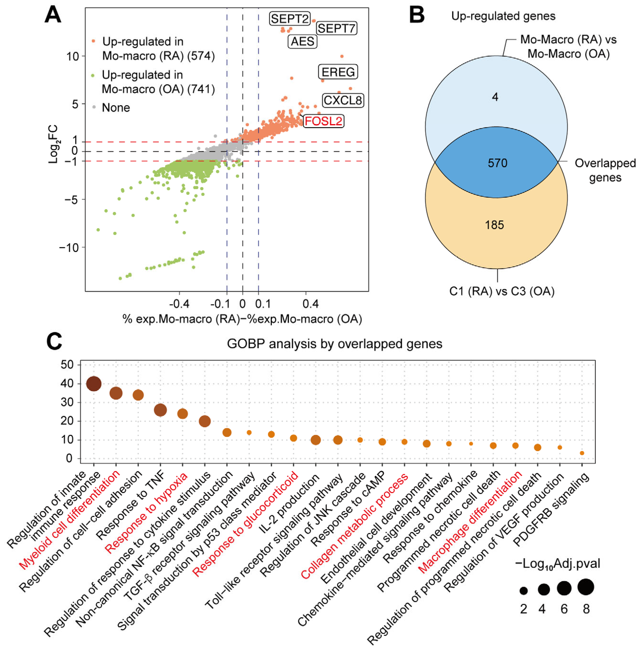 2.4. Multiple Functions of Synovial CXCL3+FOSL2+Mac on RA