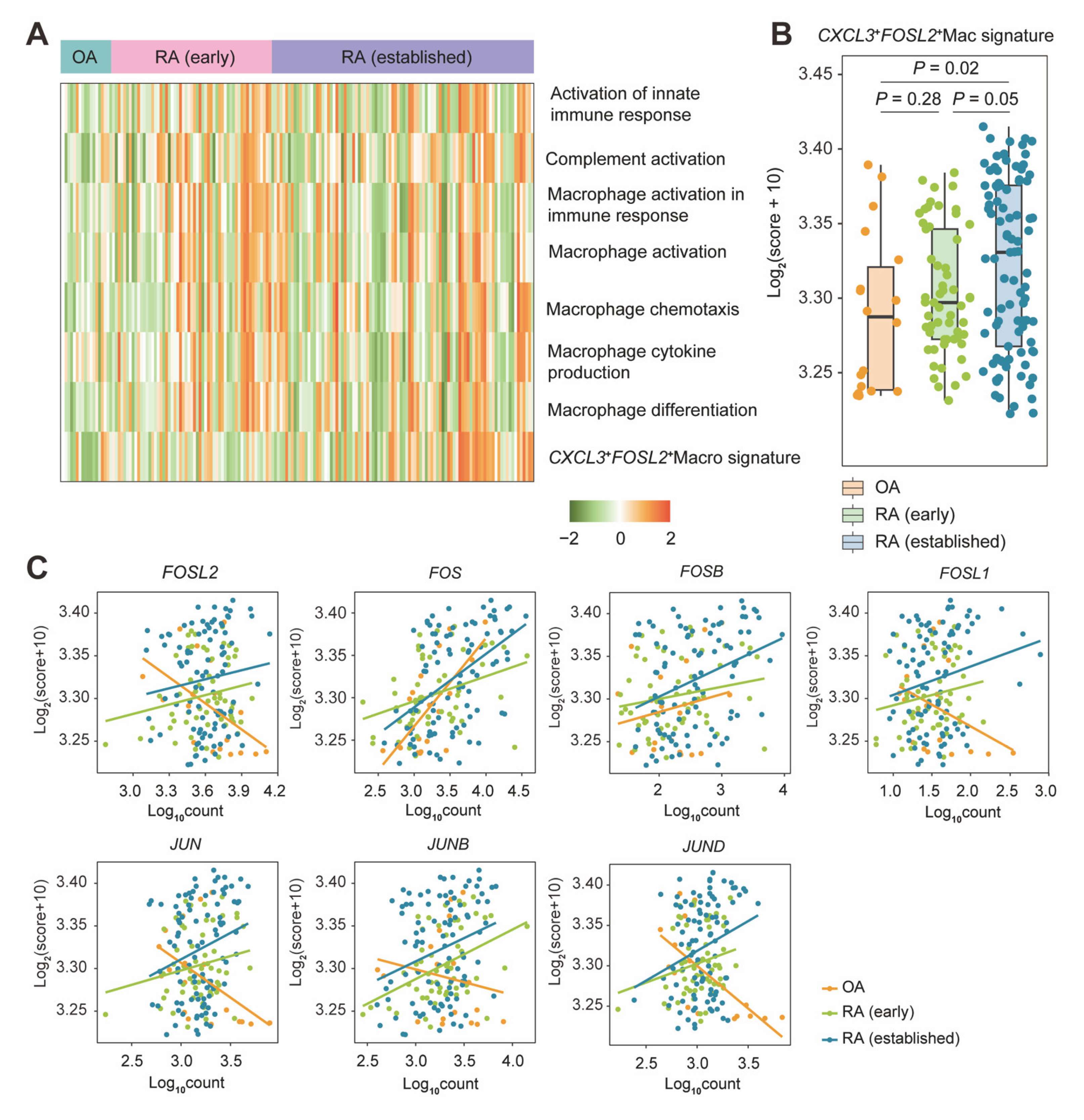 Chicago/Turabian StyleWu, Yiwei, Jinming Yang, Mengke Chen, Xiaoxiang Chen, and Shan Cao. 2025. "Synovial CXCL3+FOSL2+ Macrophages Mediate Inflammation via FOSL2/AP-1 in Rheumatoid Arthritis: A Single-Cell Transcriptome Analysis" International Journal of Molecular Sciences 26, no. 19: 9718. https://doi.org/10.3390/ijms26199718
