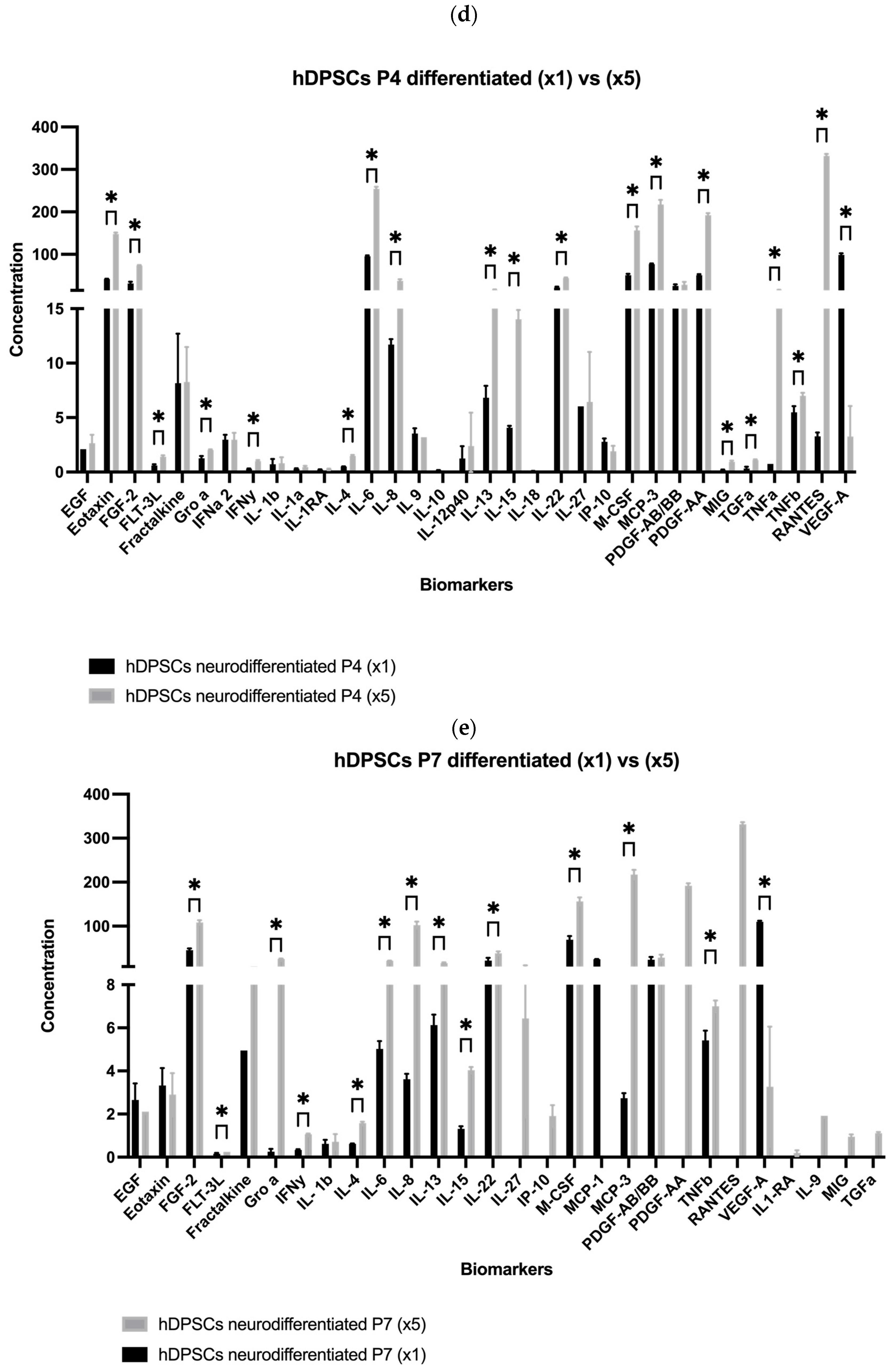 - Neurodifferentiated hDPSCs at P4 and P7 with concentrated CM (5×).