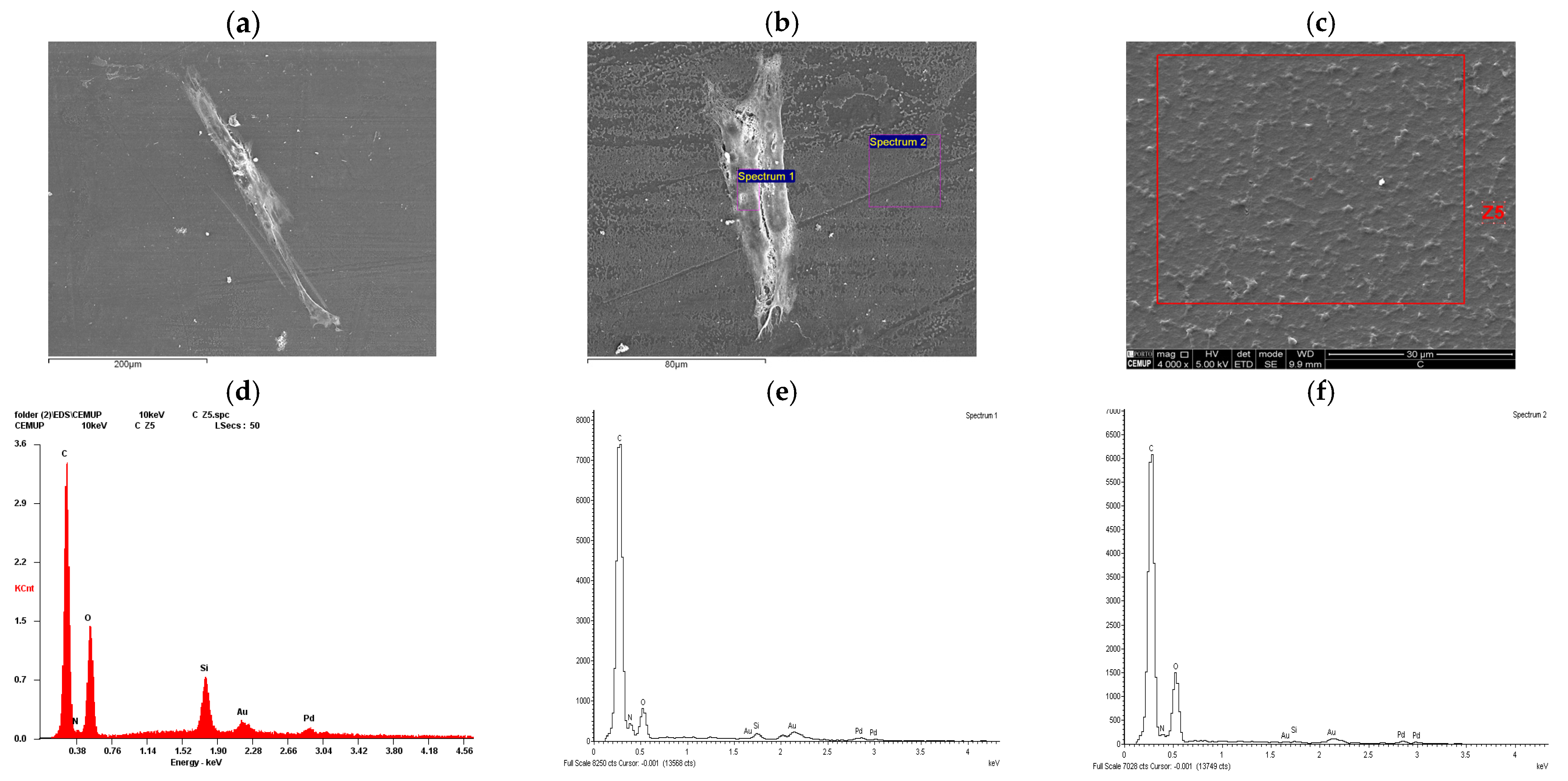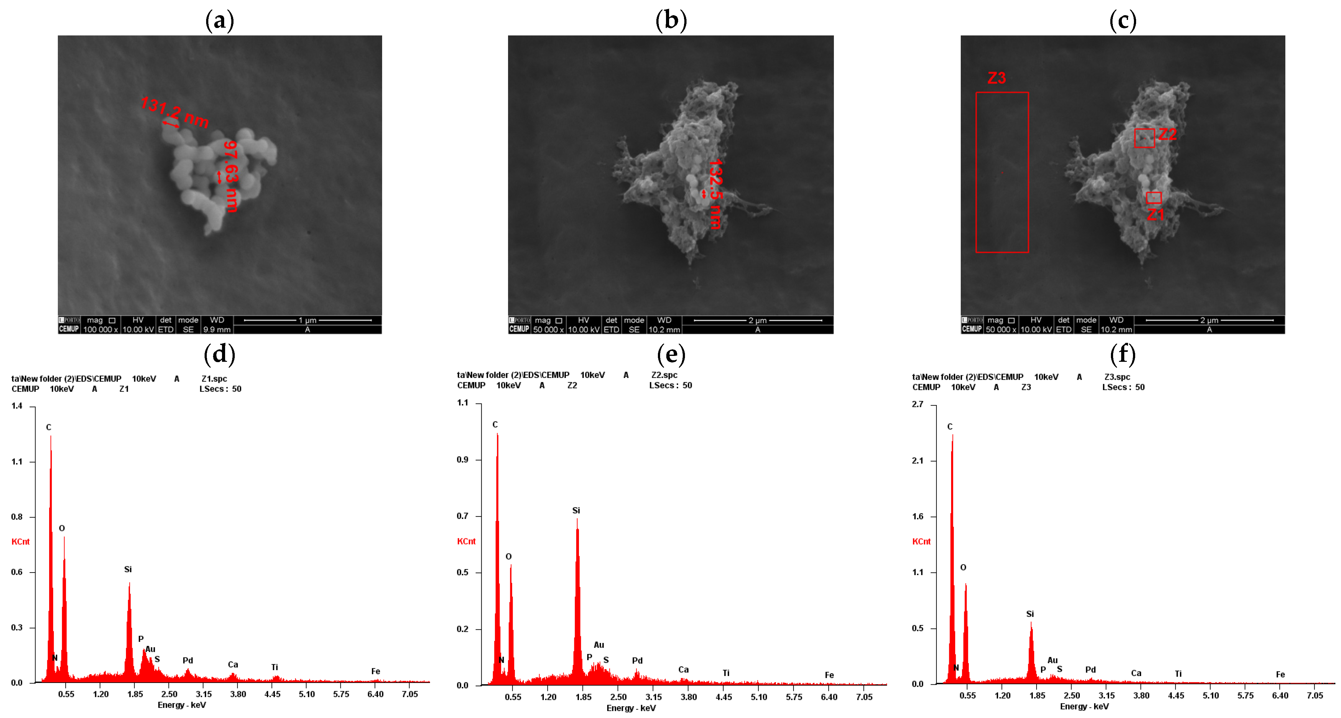 2.2. Scanning Electron Microscopy (SEM) and Energy Dispersive X-Ray Spectroscopy (EDS) Analysis