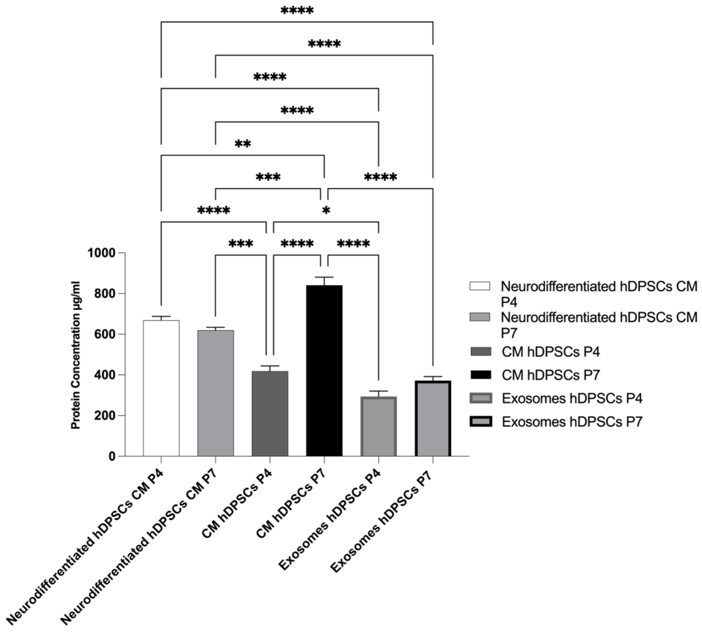 Neurodifferentiated hDPSCs CM P7 | *** | *** | **** | **** | ||