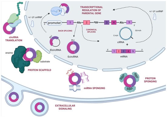To complete the circRNA classification it is essential to include their biogenesis mechanisms, as previously stated, and functional diversity, which will be described in detail later in the review.