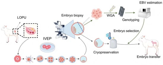- Mullaart, E.; Wells, D. Embryo Biopsies for Genomic Selection. In Animal Biotechnology 2; Niemann, H., Wrenzycki, C., Eds.; Springer International Publishing: Cham, Switzerland, 2018; pp. 81–94. ISBN 978-3-319-92347-5. [Google Scholar]