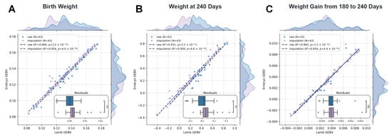 2.7. High Concordance in GEBVs Between Embryos and Offspring