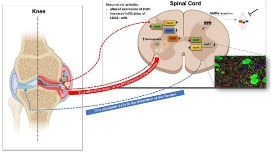 Fouani, M.; Scalia, F.; Mangano, G.D.; Rappa, F.; Abou-Kheir, W.; Leone, A.; Lawand, N.; Barone, R. Exploring the Role of Heat Shock Proteins in Neuroimmune Modulation in Rheumatoid Arthritis: Insights from a Rat Model. Int. J. Mol. Sci. 2025, 26, 9743. https://doi.org/10.3390/ijms26199743