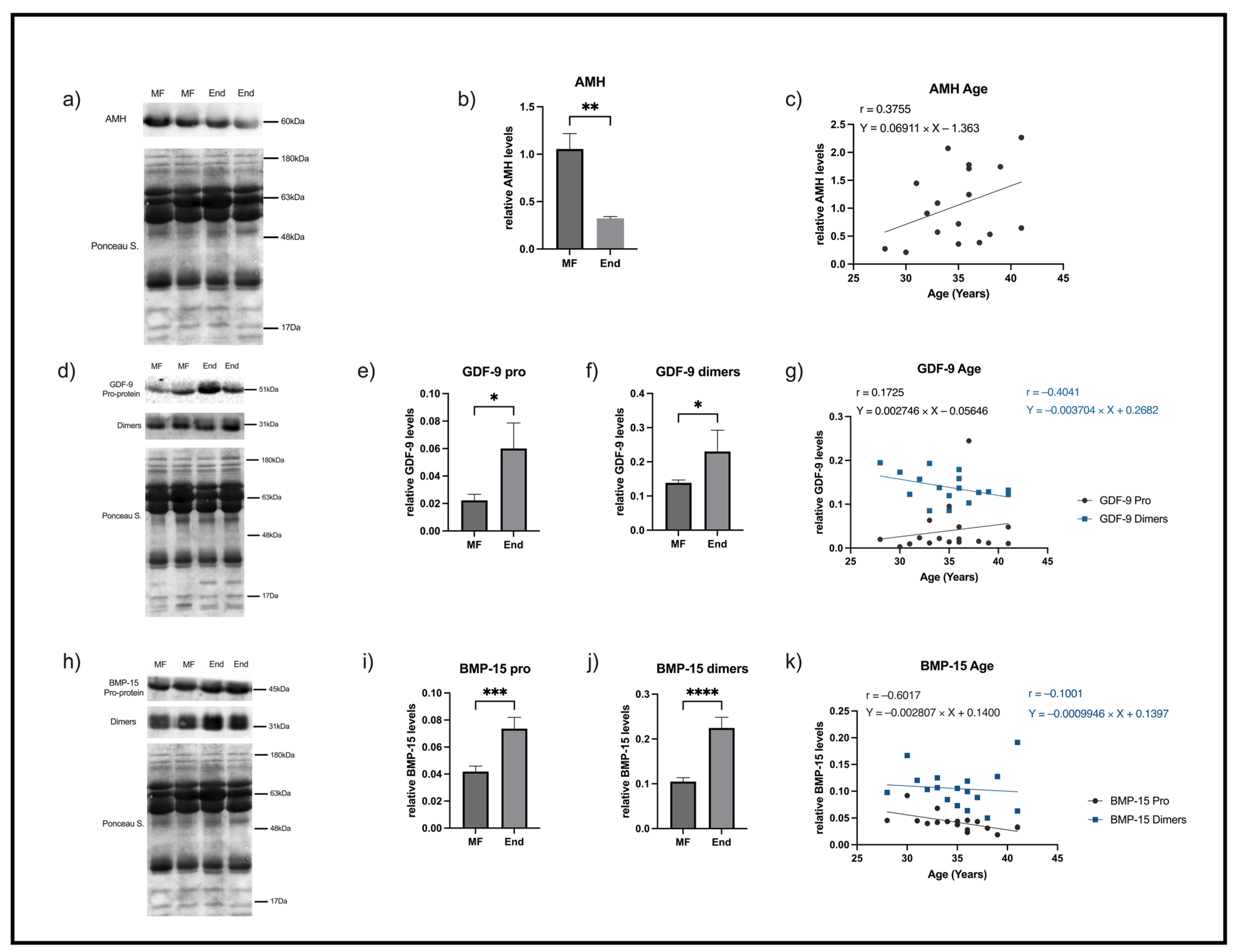 2.2. AMH Decreases and GDF-9 and BMP-15 Increases in FF Samples of Women with Endometriosis