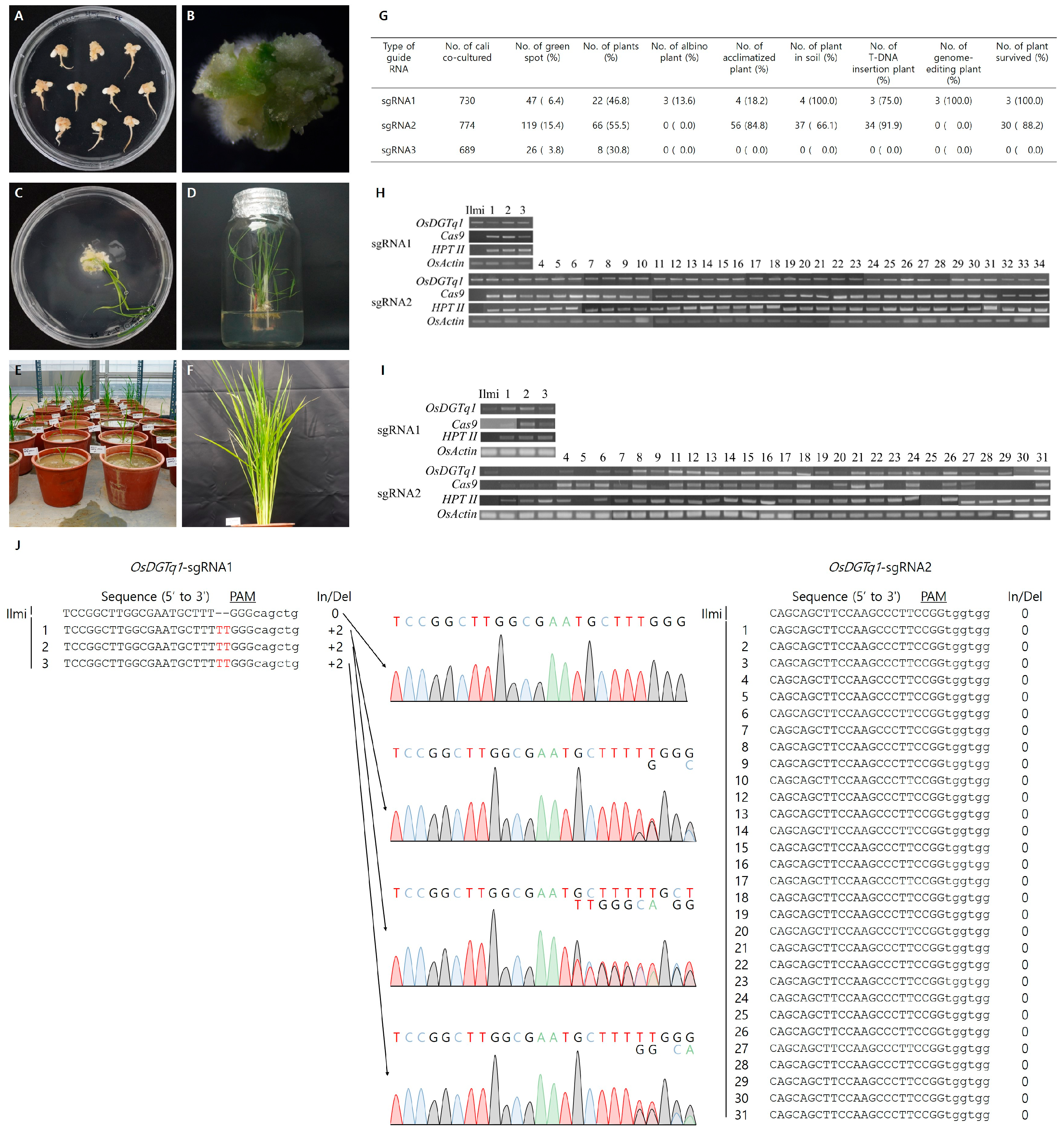 2.2. CRISPR/Cas9-Mediated Editing of OsDGTq1