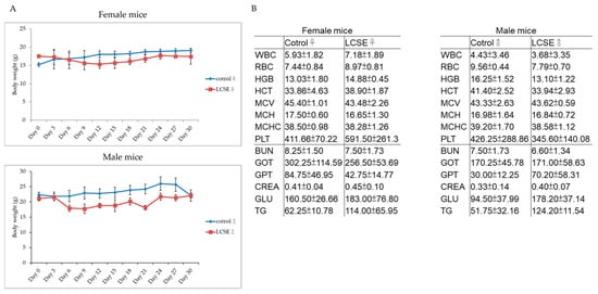 2.2. LCSE Exhibits No Overt Toxicity in Male and Female Mice