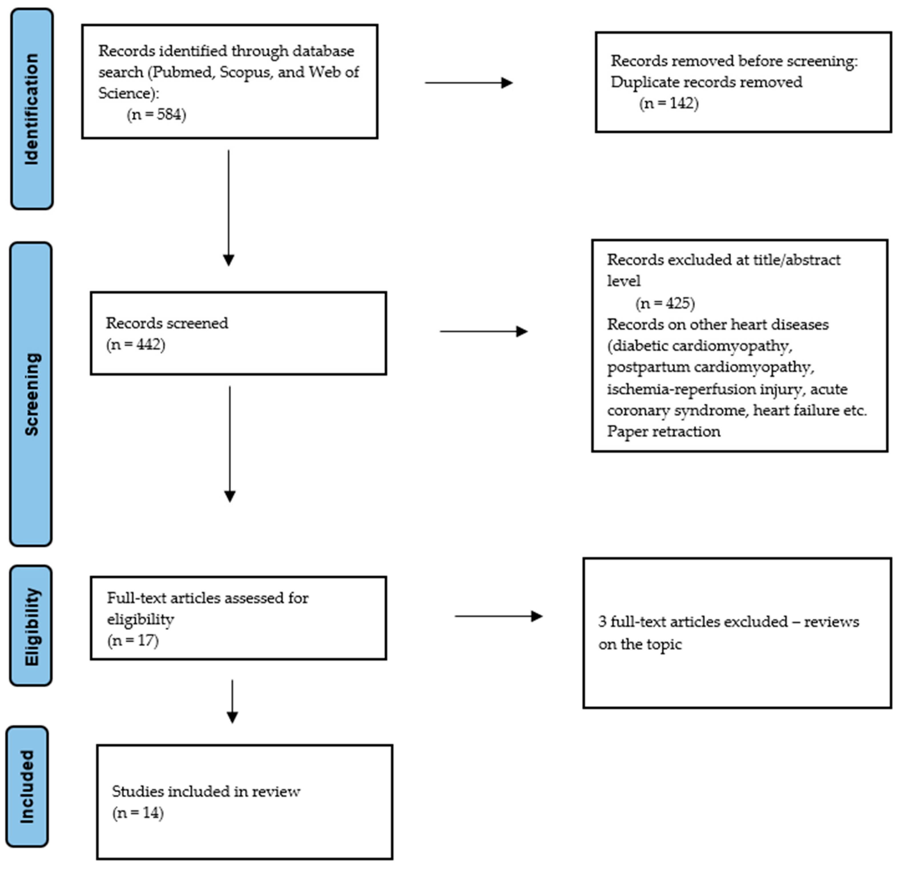 - Chimenti, C.; Magnocavallo, M.; Vetta, G.; Alfarano, M.; Manguso, G.; Ajmone, F.; Ballatore, F.; Costantino, J.; Ciaramella, P.; Miraldi, F.; et al. The Role of MicroRNA in the Myocarditis: A Small Actor for a Great Role. Curr. Cardiol. Rep. 2023, 25, 641–648. [Google Scholar] [CrossRef] [PubMed]