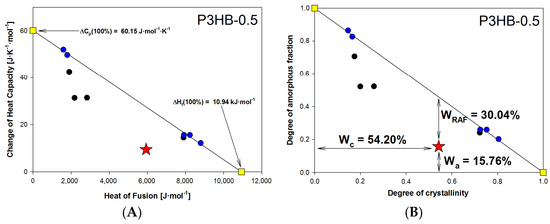 - Czerniecka-Kubicka, A.; Zarzyka, I.; Pyda, M. Advanced analysis of poly(3-hydroxybutyrate) phases based on vibrational heat capacity. J. Therm. Anal. Calorim. 2017, 127, 905–914. [Google Scholar] [CrossRef][Green Version]