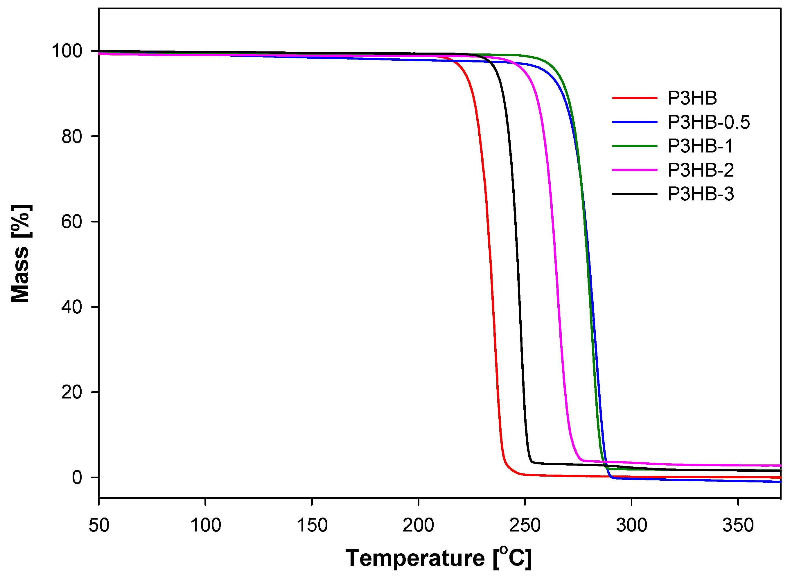 - Zarzyka, I.; Czerniecka-Kubicka, A.; Hęclik, K.; Dobrowolski, L.; Pyda, M.; Leś, K.; Walczak, M.; Białkowska, A.; Bakar, M. Thermally stable biopolymer composites based on poly(3-hydroxybutyrate) modified with linear aliphatic polyurethanes—Preparation and properties. Acta Bioeng. Biomech. 2021, 23, 2. [Google Scholar] [CrossRef]
