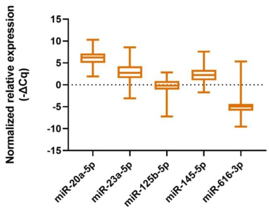 | miRNA | miR-20a-5p | miR-23a-3p | miR-125b-5p | miR-145-5p | miR-616-3p | |