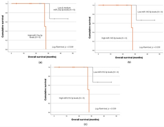 2.5. MiRNA Expression Levels and Patients’ Prognosis