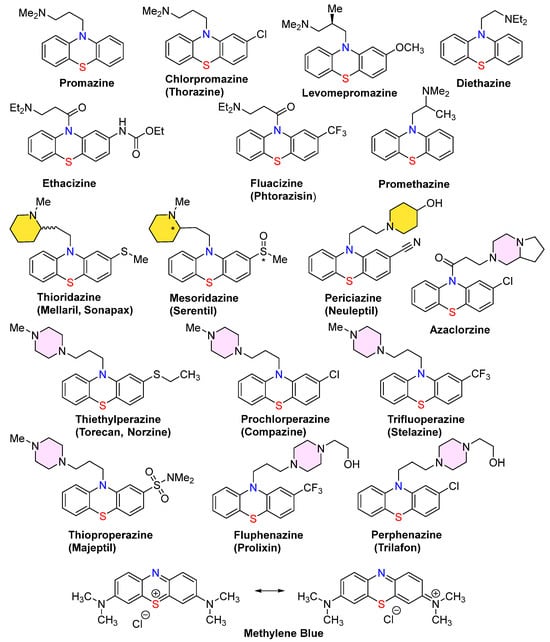 - Khelwati, H.; van Geelen, L.; Kalscheuer, R.; Müller, T.J.J. Synthesis, electronic, and antibacterial properties of 3,7-di(hetero)aryl-substituted phenothiazinyl N-propyl trimethylammonium salts. Molecules 2024, 29, 2126. [Google Scholar] [CrossRef]