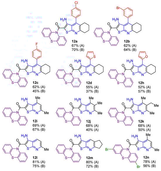 Chicago/Turabian StyleDotsenko, Victor V., Vladislav K. Kindop, Vyacheslav K. Kindop, Eva S. Daus, Igor V. Yudaev, Yuliia V. Daus, Alexander V. Bespalov, Dmitrii S. Buryi, Darya Yu. Lukina, Nicolai A. Aksenov, and et al. 2025. "Synthesis of New Phenothiazine/3-cyanoquinoline and Phenothiazine/3-aminothieno[2,3-b]pyridine(-quinoline) Heterodimers" International Journal of Molecular Sciences 26, no. 19: 9798. https://doi.org/10.3390/ijms26199798