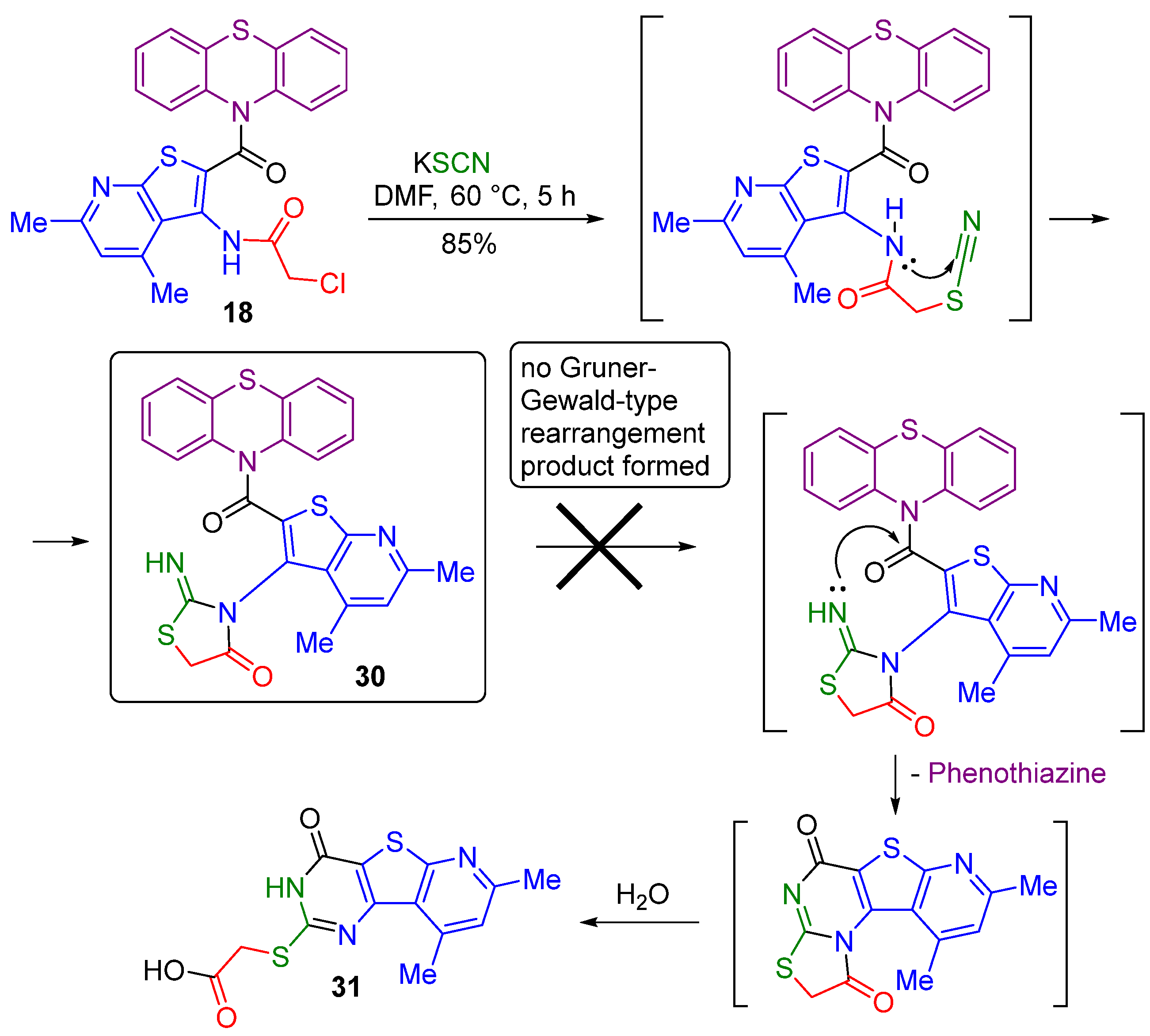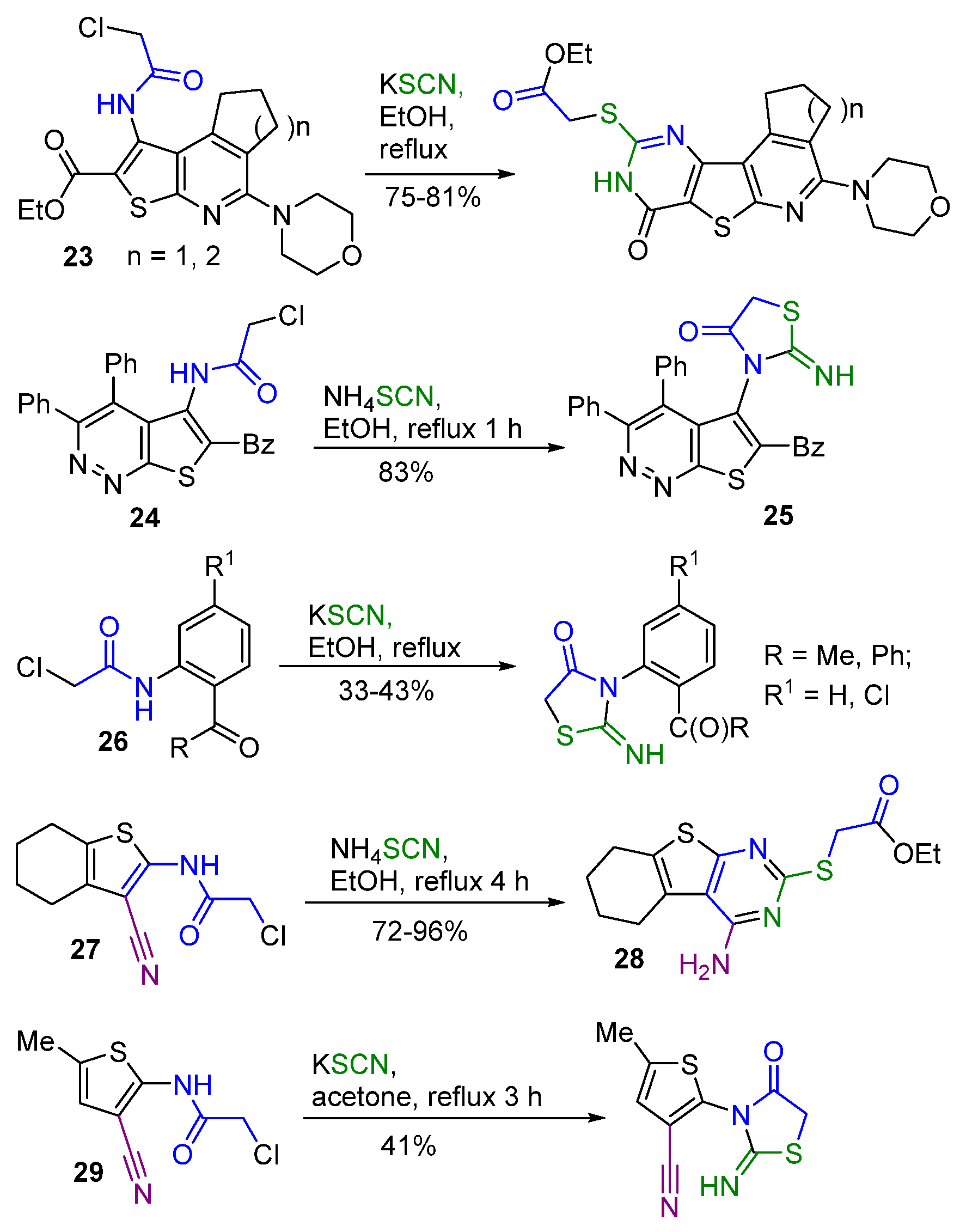 - Saravanan, G.; Selvaraju, R.; Nagarajan, S. Synthesis of novel 2-iminothiazolidin-4-ones. Synth. Commun. 2012, 42, 3361–3367. [Google Scholar] [CrossRef]