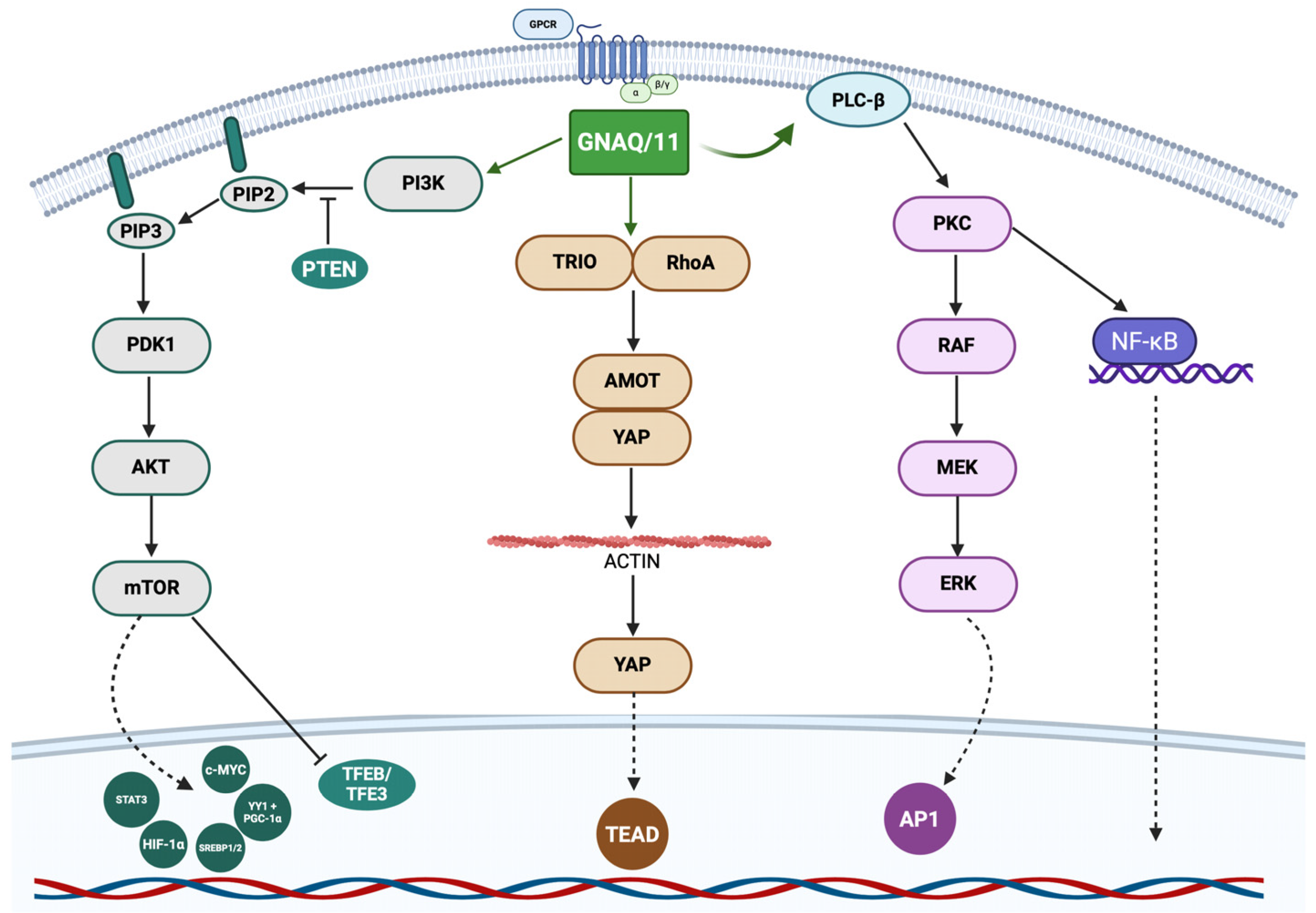 - Silva-Rodríguez, P.; Fernández-Díaz, D.; Bande, M.; Pardo, M.; Loidi, L.; Blanco-Teijeiro, M.J. GNAQ and GNA11 genes: A comprehensive review on oncogenesis, prognosis and therapeutic opportunities in uveal melanoma. Cancers 2022, 14, 3066. [Google Scholar] [CrossRef]