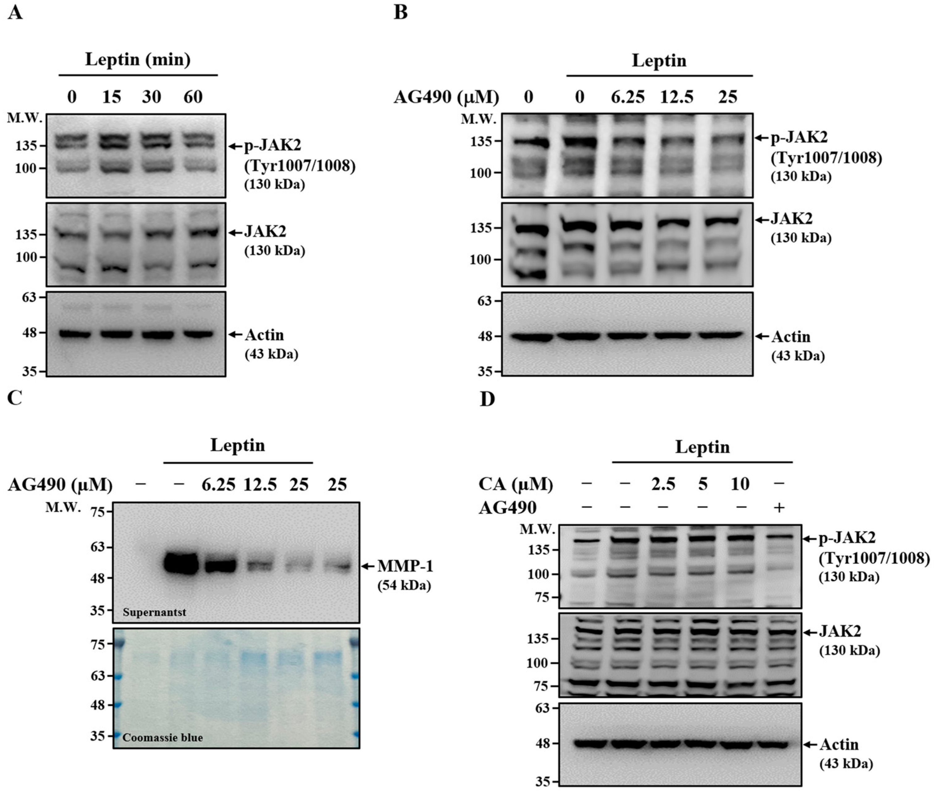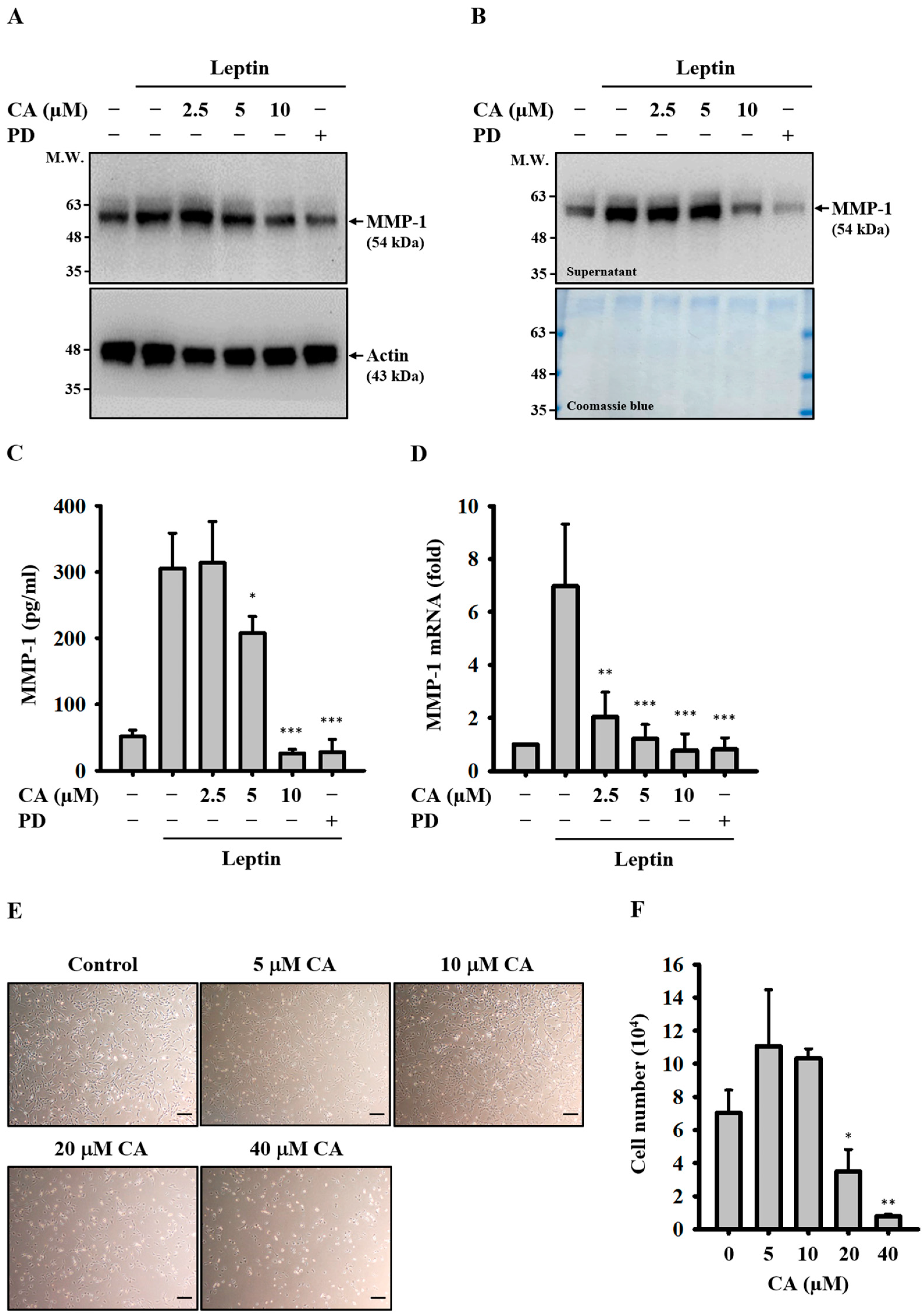2.1. Effect of CA on Leptin-Induced MMP-1 Expression