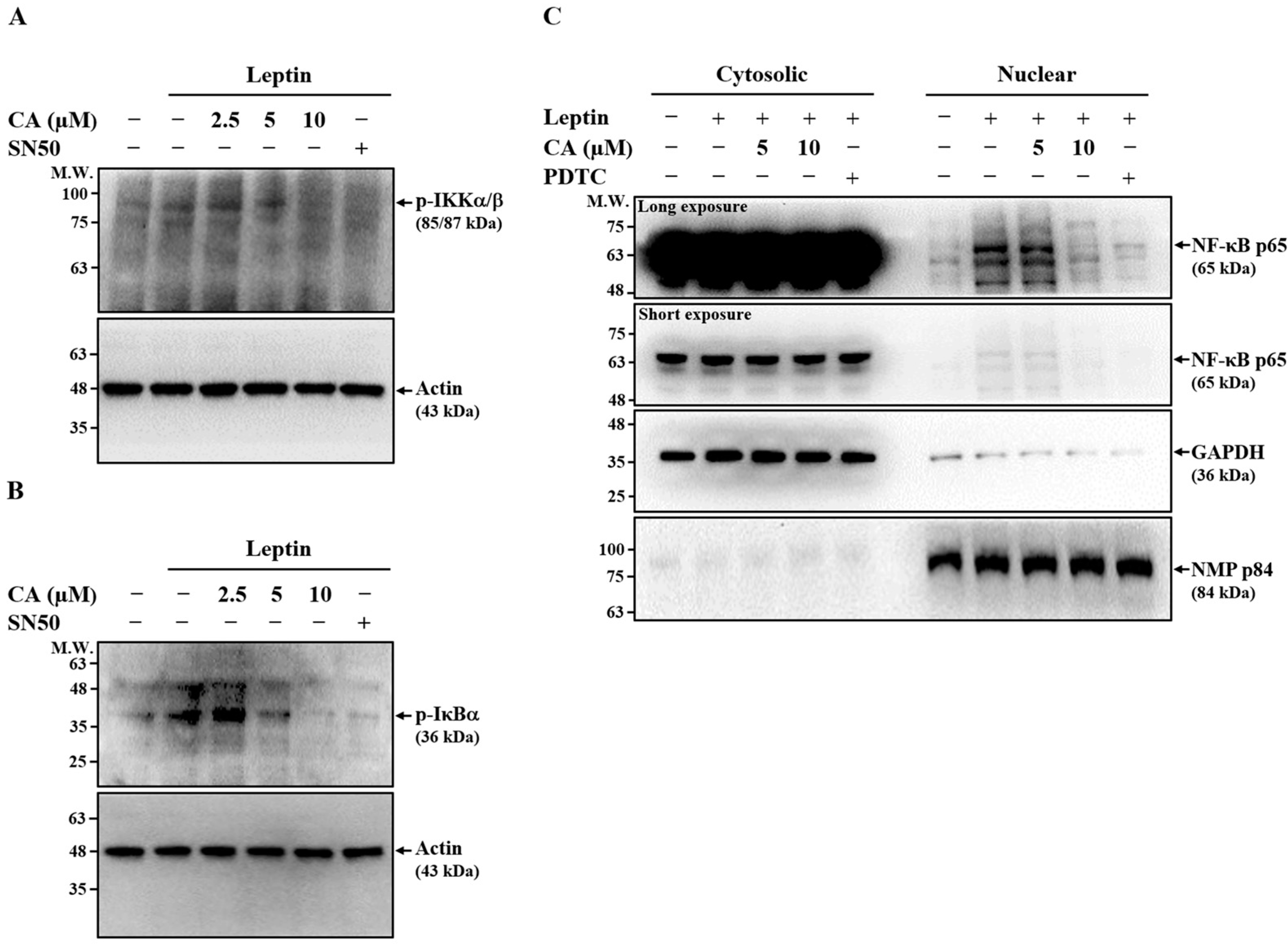 2.3. Effect of CA on Leptin-Induced Activation of NF-κB