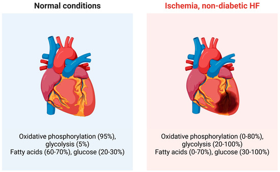 - Shehadeh, L.A.; Robleto, E.; Lopaschuk, G.D. Cardiac energy substrate utilization in heart failure with preserved ejection fraction: Reconciling conflicting evidence on fatty acid and glucose metabolism. Am. J. Physiol. Heart Circ. Physiol. 2025, 328, H1267–H1295. [Google Scholar] [CrossRef]