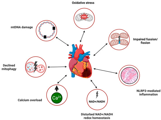 - Nasuhidehnavi, A.; Zarzycka, W.; Górecki, I.; Chiao, Y.A.; Lee, C.F. Emerging interactions between mitochondria and NAD+ metabolism in cardiometabolic diseases. Trends Endocrinol. Metab. 2025, 36, 176–190. [Google Scholar] [CrossRef]