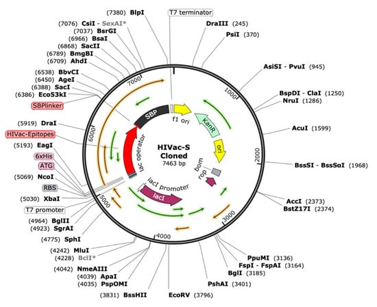 - Larijani, M.S.; Sadat, S.M.; Bolhassani, A.; Pouriayevali, M.H.; Bahramali, G.; Ramezani, A. In Silico Design and Immunologic Evaluation of HIV-1 p24-Nef Fusion Protein to Approach a Therapeutic Vaccine Candidate. Curr. HIV Res. 2018, 16, 322–337. [Google Scholar] [CrossRef]