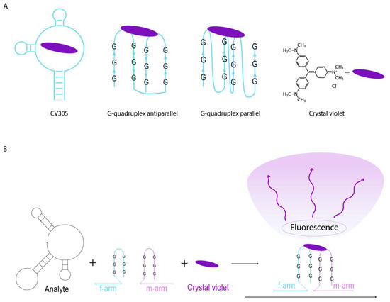 - Kong, D.M.; Guo, J.H.; Yang, W.; Ma, Y.E.; Shen, H.X. Crystal violet–G-quadruplex complexes as fluorescent sensors for homogeneous detection of potassium ion. Biosens. Bioelectron. 2009, 25, 88–93. [Google Scholar] [CrossRef]