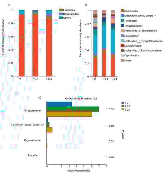 APA StyleYuan, Y., Niu, X., Hao, C., Liang, L., Huang, Z., Wang, D., Hong, M., & Ding, L. (2025). Dietary Taurine Regulation of the Intestinal Microbiome in Chinese Stripe-Necked Turtle (Mauremys sinensis). International Journal of Molecular Sciences, 26(2), 445. https://doi.org/10.3390/ijms26020445