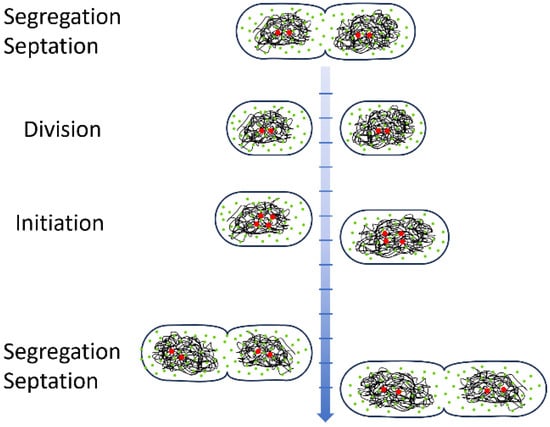 - Hill, N.S.; Kadoya, R.; Chattoraj, D.K.; Levin, P.A. Cell size and the initiation of DNA replication in bacteria. PLoS Genet. 2012, 8, e1002549. [Google Scholar] [CrossRef]