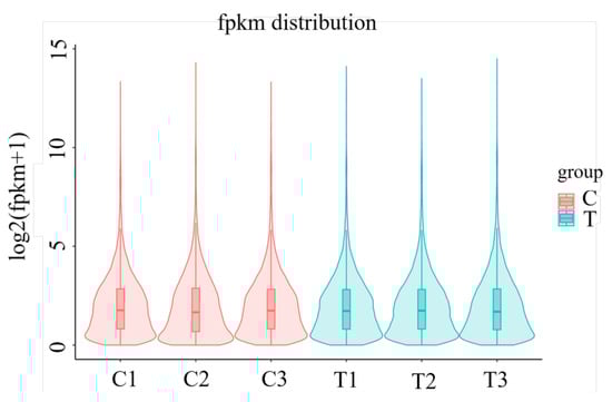 The FPKM values’ violin plot (Figure 1) demonstrated a symmetrical distribution, indicating that gene expression followed a normal distribution. The consistency of the median values further confirmed the reliability and quality of the data, supporting its suitability for subsequent differential gene expression analysis.