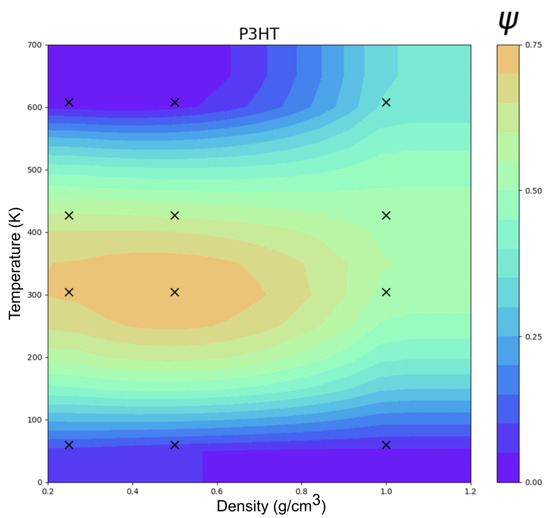 Figure 7. Temperature vs. density clustering in an order parameter ( Ψ ) phase diagram of P3HT at 12 statepoints.