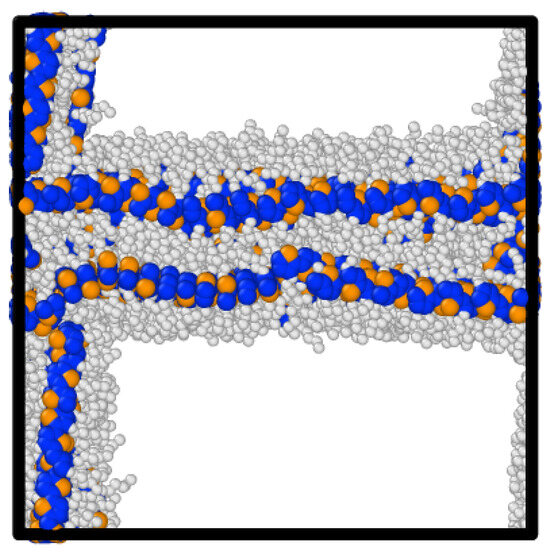 32. Martínez, L.; Andrade, R.; Birgin, E.G.; Martínez, J.M. PACKMOL: A package for building initial configurations for molecular dynamics simulations. J. Comput. Chem. 2009, 30, 2157–2164. [Google Scholar] [CrossRef] [PubMed]