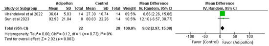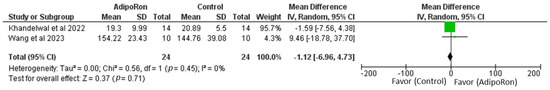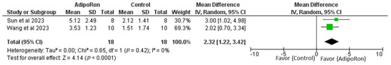 Meta-analysis for overall effects of AdipoRon on swimming speed [99,100].