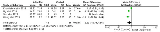 Meta-analysis for overall effects of AdipoRon on crossing times [98,99].