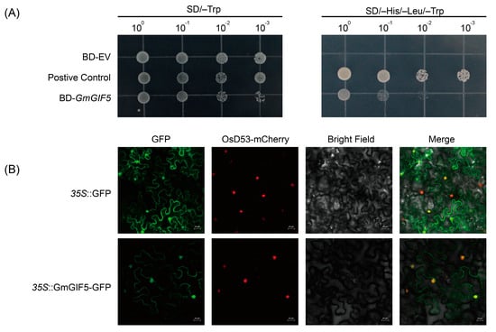 2.2. Nuclear Protein GmGIF5 Has Self-Transactivation Activity