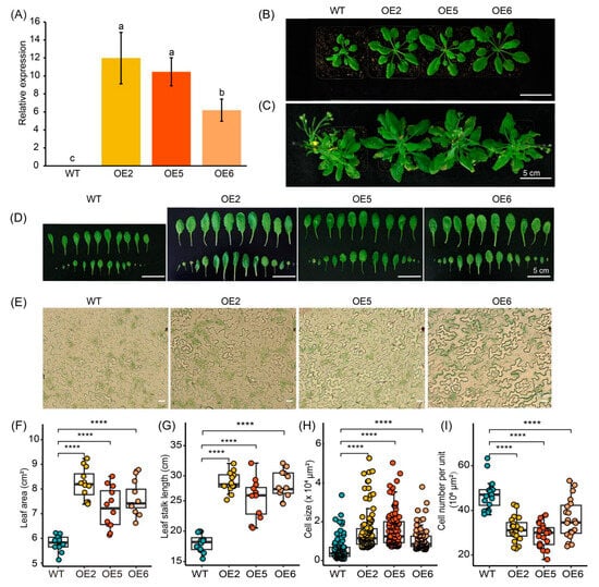 2.3. Overexpression of GmGIF5 Contributes to Leaf Development