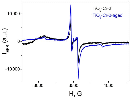 EPR spectra of as prepared and aged TiO2-Cr-2 material according to protocol of long-term gas sensor measurements.