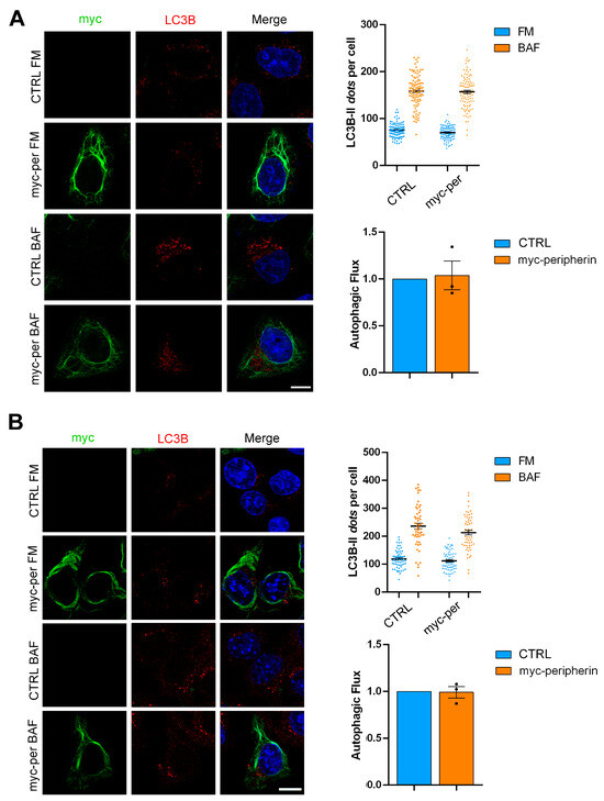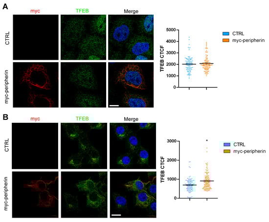 2.4. The Overexpression of Peripherin Influences TFEB Abundance but Not the Autophagic Flux