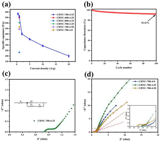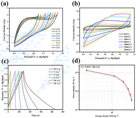 2.3.2. Test on Symmetric Supercapacitor CHNC-700-4-25//CHNC-700-4-25