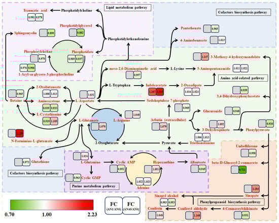 3.4. The Lipid and Puring Metabolism Pathways Responded to Aniline Stress