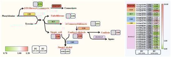 3.2. The Phenylpropanoid Biosynthesis Pathway Responded to Aniline Stress