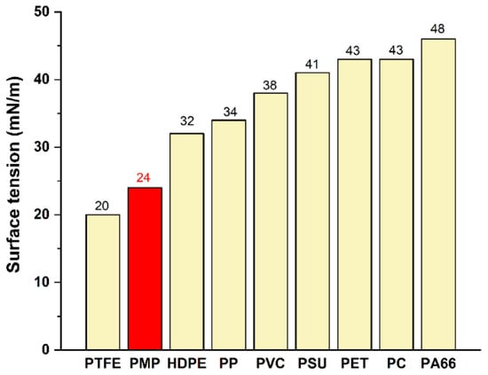 For example, PMP asymmetric membranes can be used to make subcutaneous syringes, blood collection and transfusion equipment, and pacemaker components []. For implantable medical applications, the biocompatibility of PMP is of utmost importance. It can be used in the fabrication of certain types of implants, such as small-scale implants for local drug delivery systems and biodegradable drug release devices [,]. In terms of orthopedic implants, although PMP is not as widely used as traditional materials such as titanium alloys, its lightweight nature and good biocompatibility provide advantages. In some minimally invasive surgeries, lighter implants can reduce patient trauma during implantation and recovery processes.