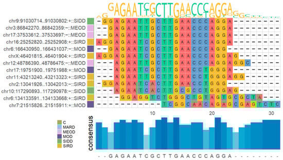 - Nassar, L.R.; Barber, G.P.; Benet-Pagès, A.; Casper, J.; Clawson, H.; Diekhans, M.; Fischer, C.; Gonzalez, J.N.; Hinrichs, A.S.; Lee, B.T.; et al. The UCSC Genome Browser database: 2023 update. Nucleic Acids Res. 2023, 51, D1188–D1195. [Google Scholar] [CrossRef] [PubMed] [PubMed Central]