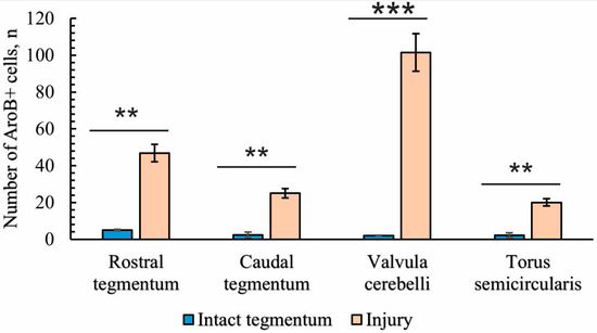 2.4.2. Immunohistochemical Labeling of AroB in the Tegmentum After Traumatic Injury