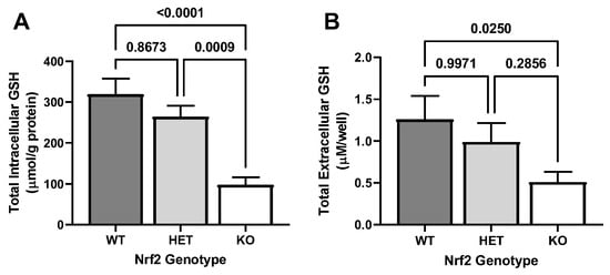 2.1. Effect of Loss of Nrf2 on Basal GSH Levels