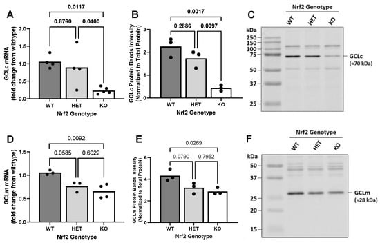 2.3. Effect of Loss of Nrf2 on Constitutive GCL Expression Levels