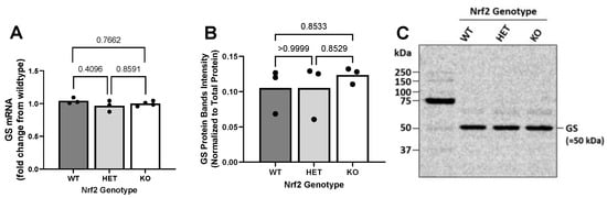2.4. Effect of Loss of Nrf2 on Constitutive GS Expression Levels