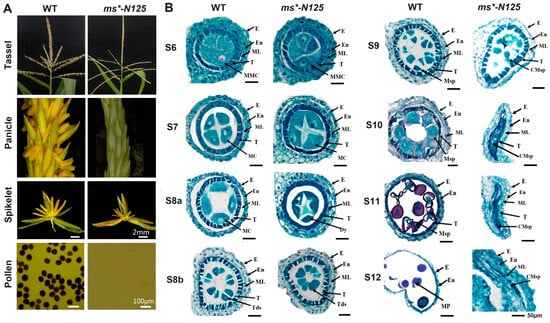 2.1. ms*-N125 Presented Typical Male Sterility (MS) Phenotypes