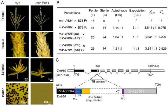 Wang, L.; Arshad, S.; Li, T.; Wei, M.; Ren, H.; Wang, W.; Jia, H.; Ma, Z.; Yan, Y. Ac/Ds-like Transposon Elements Inserted in ZmABCG2a Cause Male Sterility in Maize. Int. J. Mol. Sci. 2025, 26, 701. https://doi.org/10.3390/ijms26020701