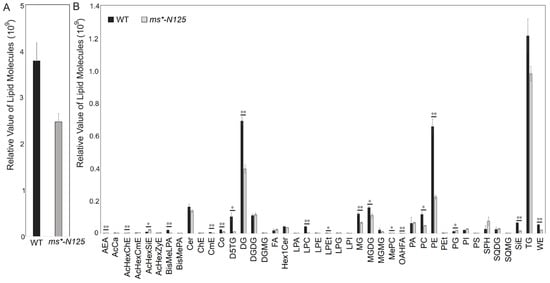 2.5. The ms*-N125 Tassels Displayed a Significant Decrease in Long-Chain Lipids